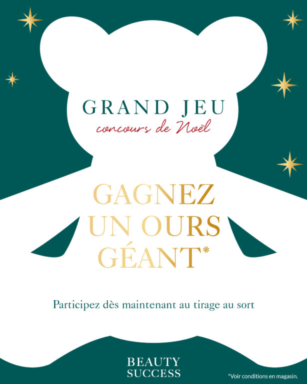 Voir la boutique : Beauty SuccessJusqu’au 20 décembre, tentez de gagner notre ours GEANT Beauty Success*. Pour participer, rendez-vous vite dans votre parfumerie-institut Beauty Success ! *Voir conditions et règlement en magasin.