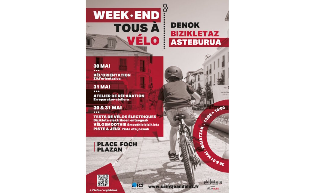 Le temps fort de l'édition 2026 de Mai à vélo se tient place Foch les samedi 30 et dimanche 31 mai de 13h30 à 18h, en accès libre. Au programme : Atelier de réparation de vélos et exposition de vélos à assistance électrique avec l'Atelier Bizikleta. Vélos de ville, tout-terrain et cargo disponibles à l'essai, avec les conseils des professionnels de l'atelier.