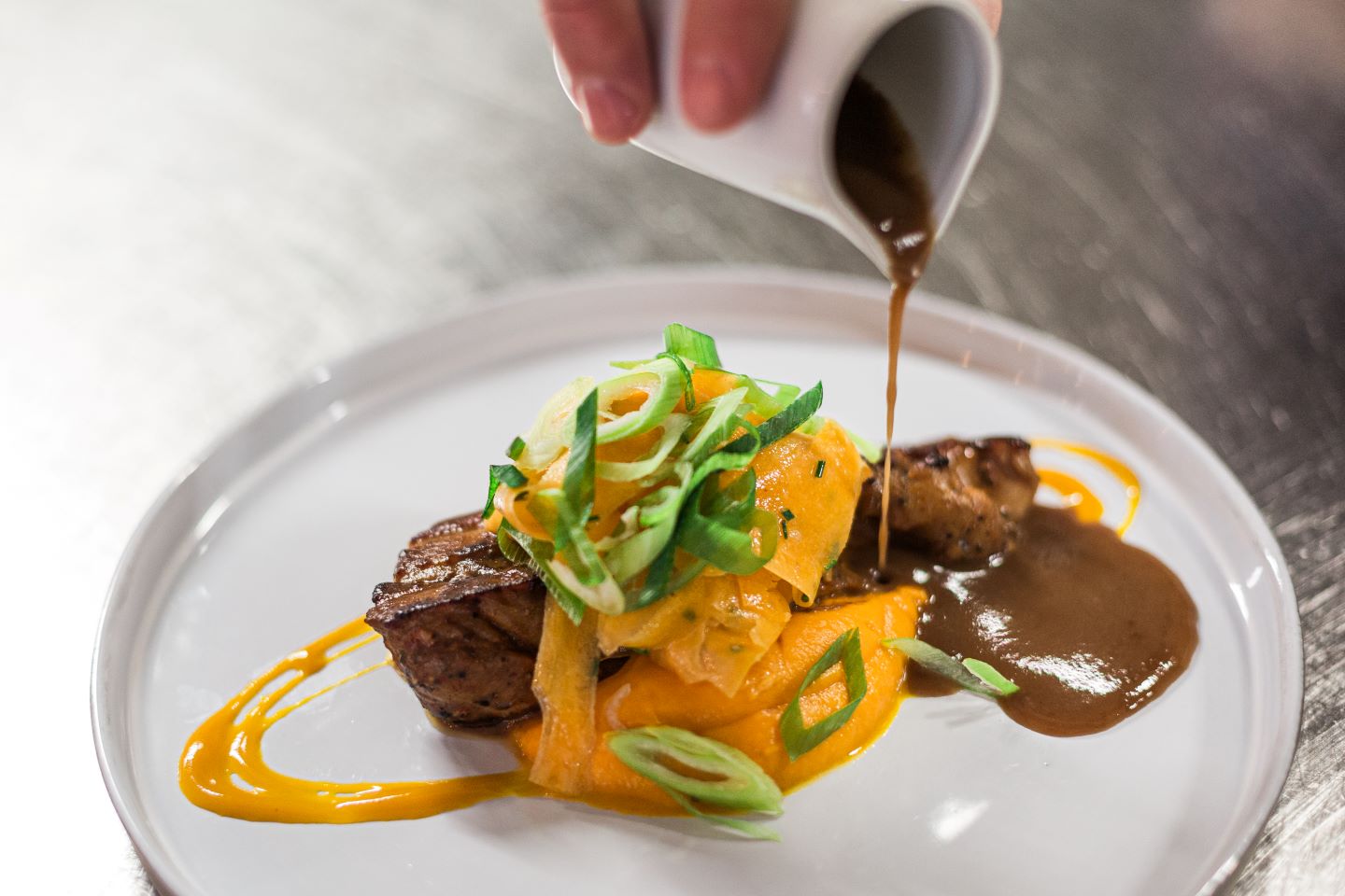 Derrière les fourneaux de sa cuisine ouverte, vous pourrez espionner du coin de l'œil le travail du chef Cibourien, Sergio Meylou.